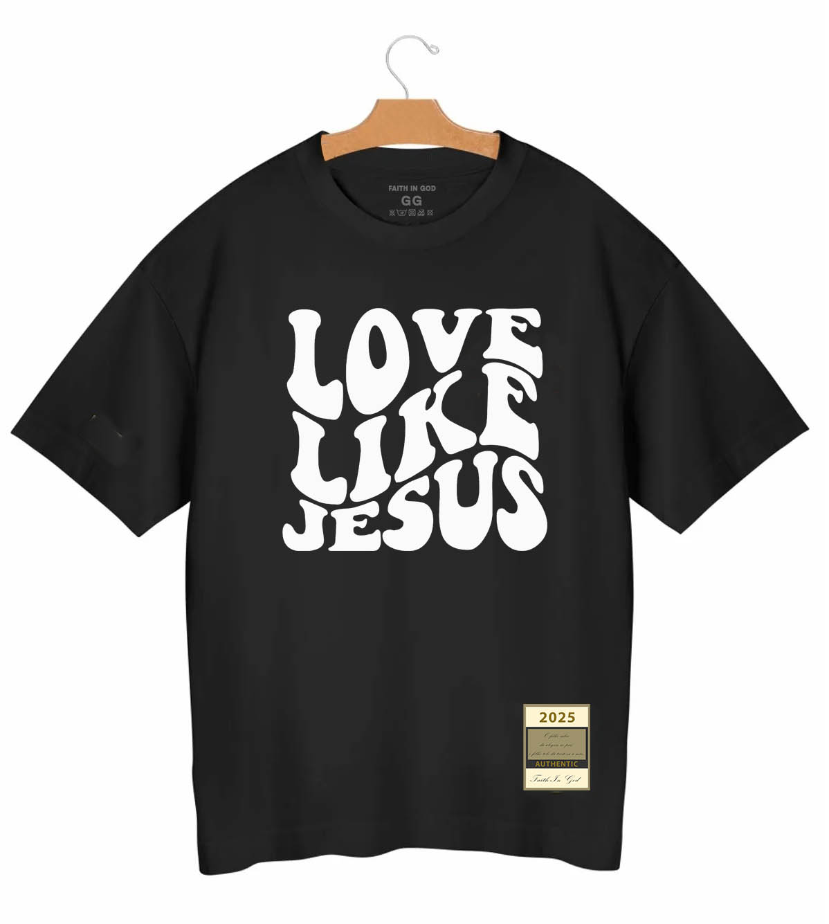 Camiseta Masculina Oversized Unissex Gola Alta Algodão 30.1 Premium Coleção Faith In LOVE LIKE JESUS